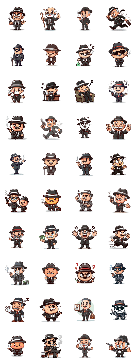 スタイリッシュなマフィア風カートゥーンステッカーで、チャットをもっと楽しく!態度やユーモア、ちょっとした悪戯心を表現できます。