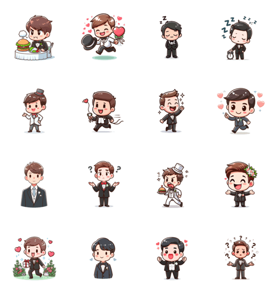 可愛い新郎カートゥーンステッカーで結婚式 -LINEスタンプマニア