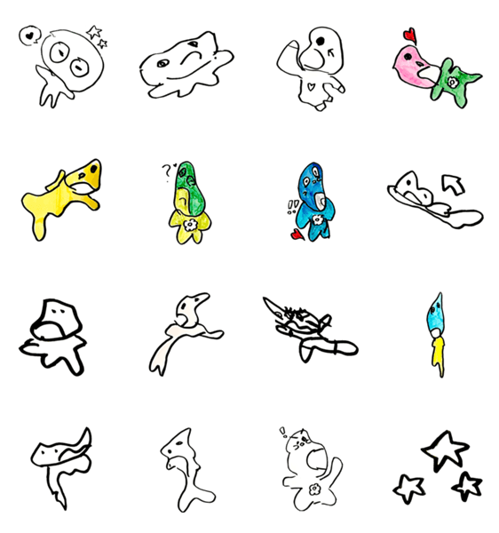 自由な曲線でかかれたふしぎないきもので、ふしぎな気持ちをおくろう