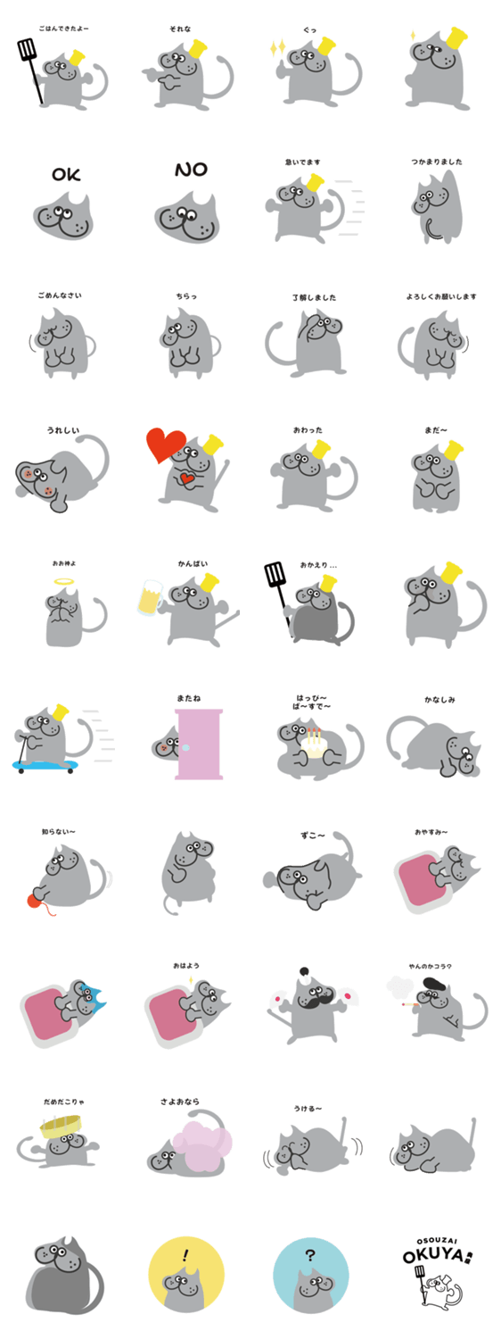 OSOUZAI OKUYA(おそうざいオクヤ)のマスコット猫がLINEスタンプに!あいさつやリアクションに毎日使えるゆるくてかわいいブリティッシュショートヘアの日常スタンプです。