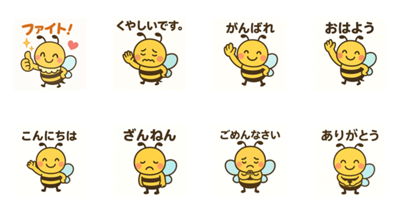 | スタンプ説明 | 大きな笑顔、ピンクのほっぺ、青い羽を持つかわいいミツバチが、キラキラとハートを添えて親指を立て、前向きな気持ちと応援を届けます。 |
