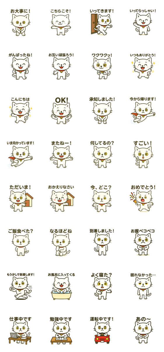 白ネコのあいうえお・・・ってるスタンプ