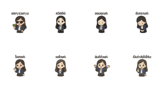 | スタンプ説明 | A cute cartoon girl with big eyes, long hair, a round face, smiling and showing a bright and cheerful expression. |