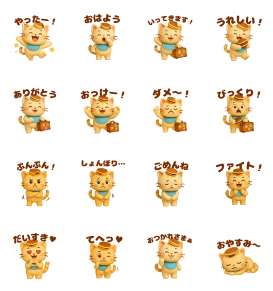 頭にどら焼きをのせた、いたずら好きで愛らしいどら焼きネコが登場!日常のやりとりをもっと楽しく、もっとかわいく彩ります。