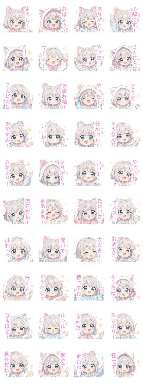 日常 セリフ 付き スタンプ 女の子 グレー パーカー ライト