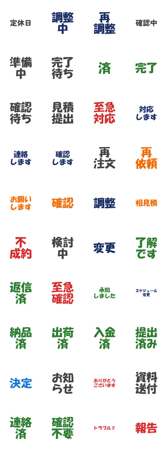丁寧で見やすい!業務連絡・スケジュール・確認・感謝など、仕事に便利な40個セット!