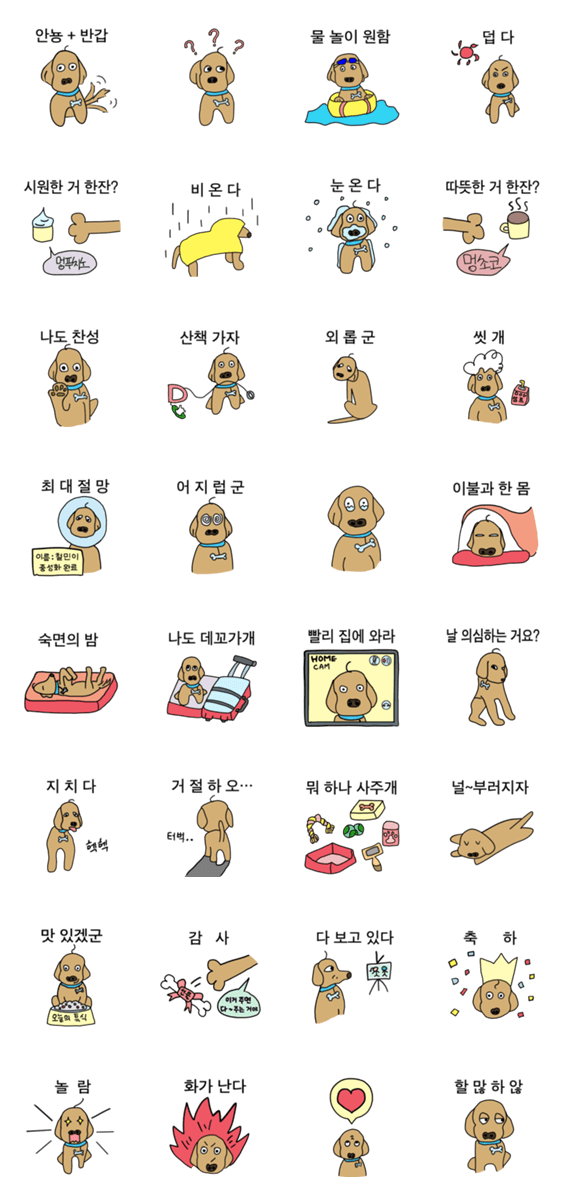 | スタンプ説明 | Stickers reflecting the daily life of a Golden Retriever with minimal facial expression |