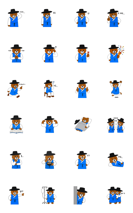 | スタンプ説明 | It's a cute bear character wearing Hanbok, traditional Korean clothing. |