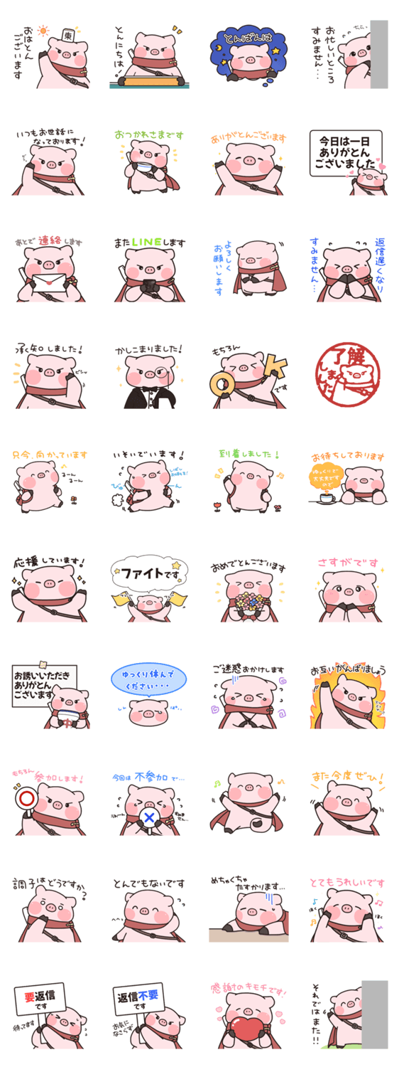 ないおトンスタンプ第二弾!敬語シリーズです♪ 可愛い豚さんキャラの日常使いしやすいスタンプです! 敬語/日常使い/豚/可愛い/丁寧/癒やし