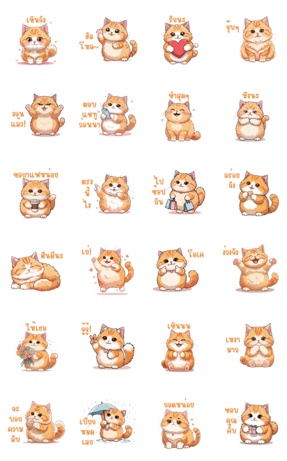 | スタンプ説明 | Mango, the chubby orange kitty, shows every girlfriend mood cute, shy, jealous, or loving in the most adorable way. |