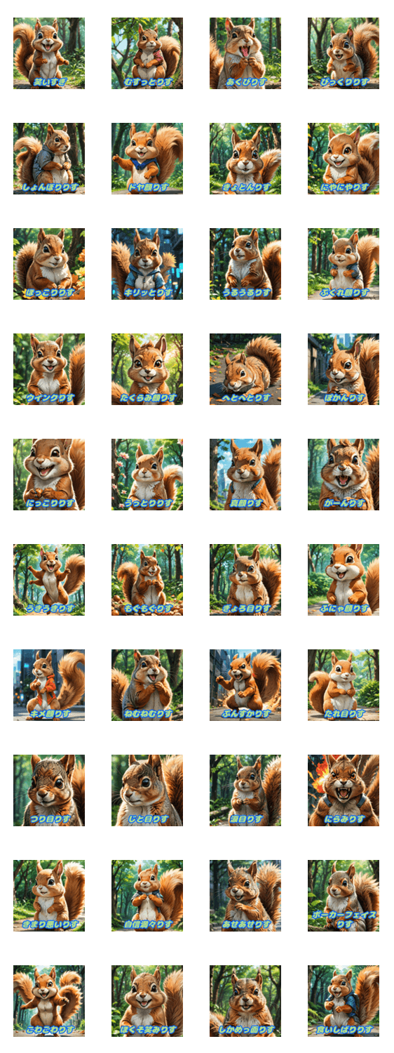 | スタンプ説明 | 笑いすぎからむすっとまで。どんな気分にも使えるりすのリアクションが勢ぞろい。 |