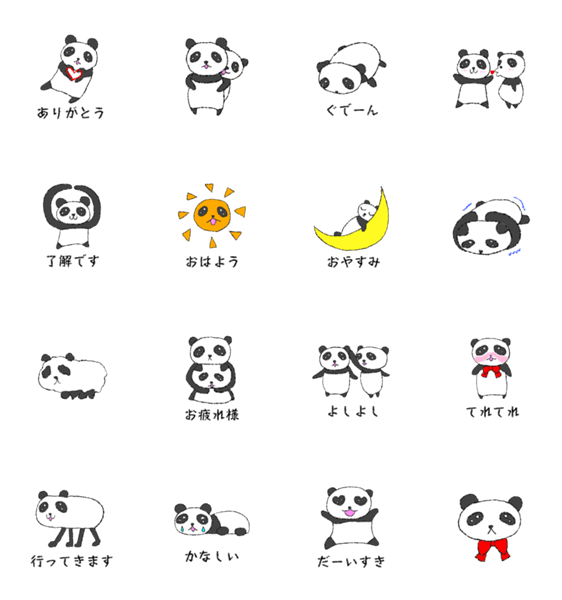 カップルでも友達でも使えるかわいいぱんたんのスタンプです。(顔隠しスタンプ付き)