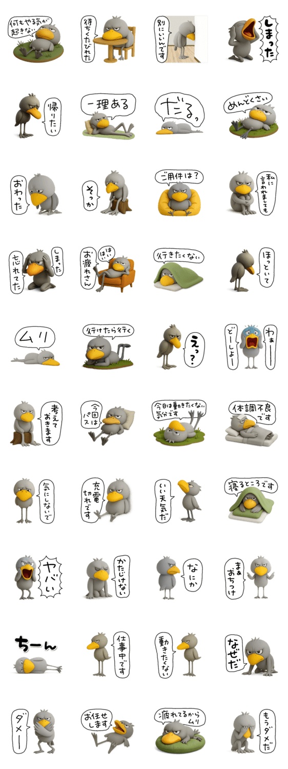 ハシビロコウ ヂカラ ネガティブスタンプ ネガティブ 強い