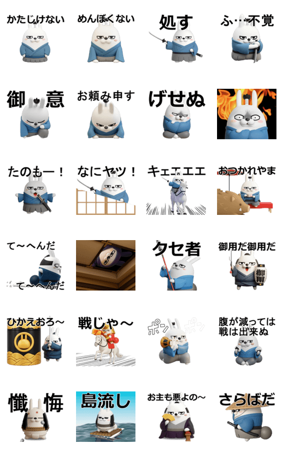 デカ動く 3D擦れ武士うさぎ -LINEスタンプマニア