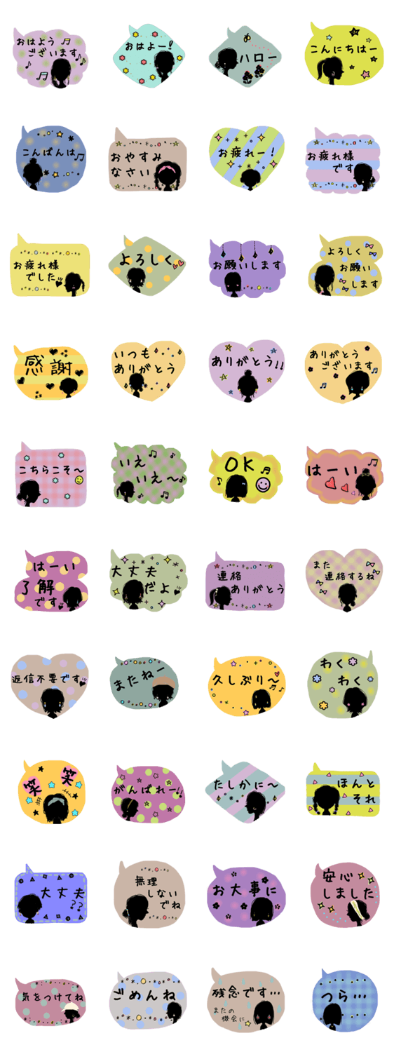 | スタンプ説明 | 吹き出し 大人女子 影絵風 くすみカラー 日常生活 |