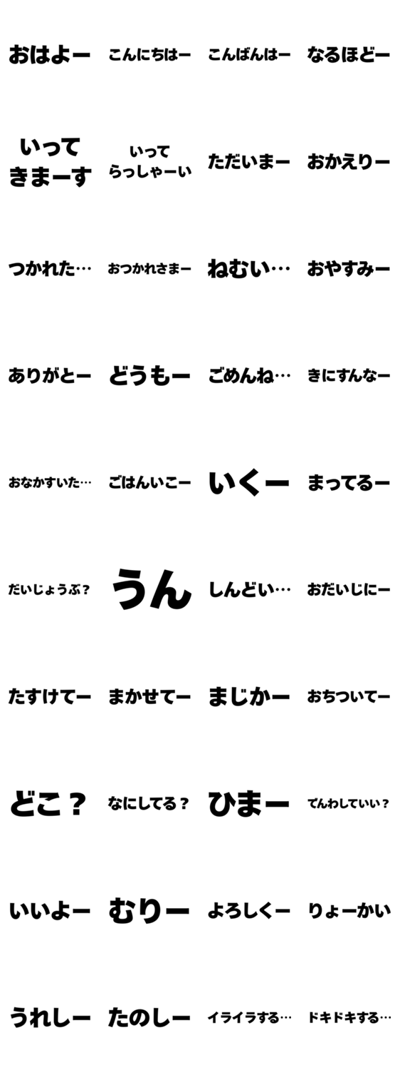日常で使える文字だけタメ語スタンプ(横書き・太字)です。文字入力が面倒な時にも使えて便利なのでオススメです。