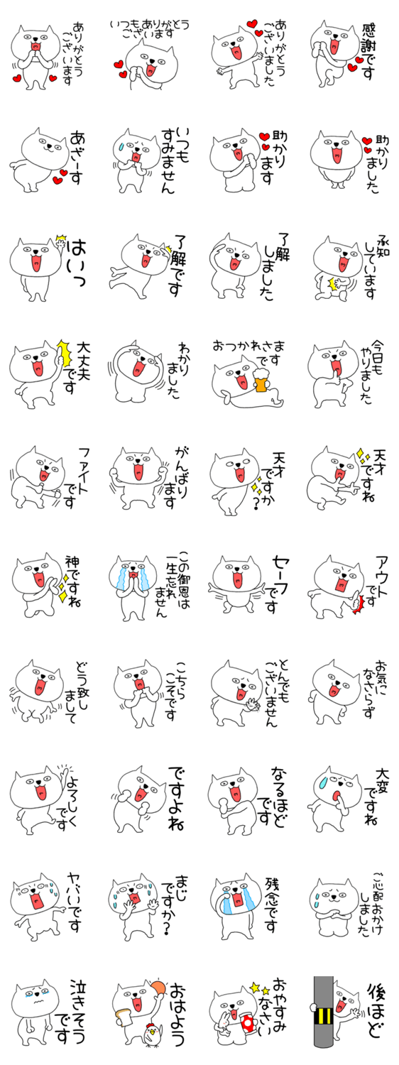 大きな文字で使いやすい毎日使えるブサ可愛いネコの敬語のスタンプです