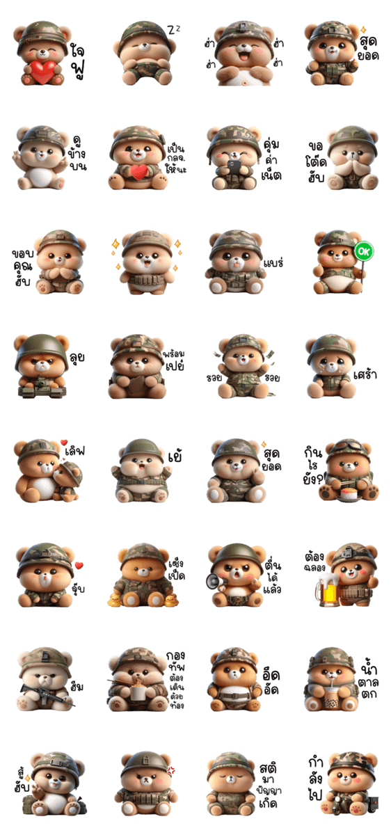 | スタンプ説明 | Little Bear, the soldier, is patient |