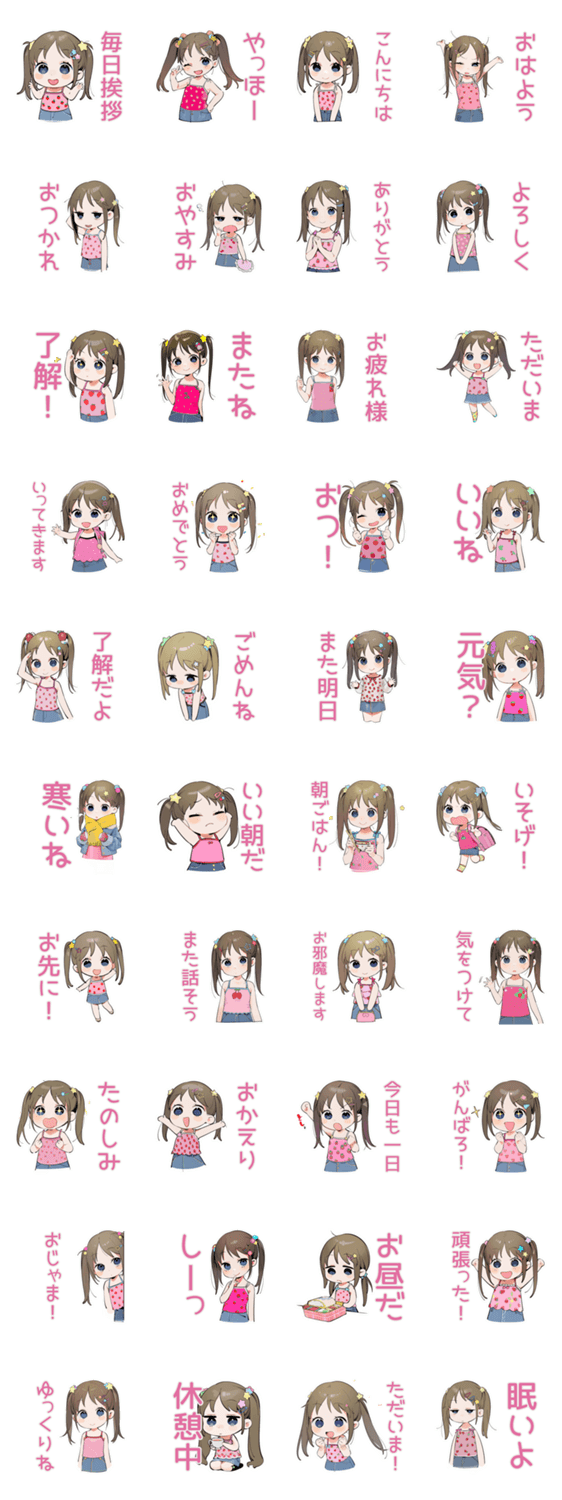 挨拶好きな女児の毎日使えるスタンプ。心に女児を飼っている大人向け。平成レトロ、可愛い、朝昼夜