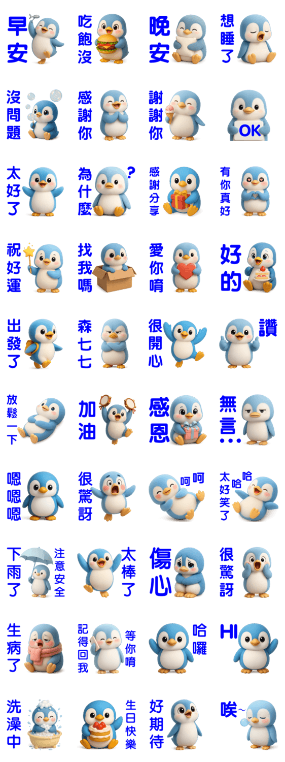 | スタンプ説明 | Cute Blue Penguin* Commonly Used Stickers |