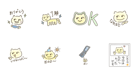 白ネコのあいうえお・・・ってるスタンプ
