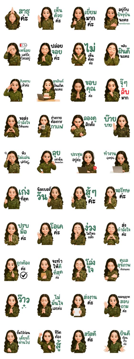 | スタンプ説明 | Adorable soldier girl stickers with many cute and expressive poses, perfect for adding charm, fun, and warmth to all your chats every day. |