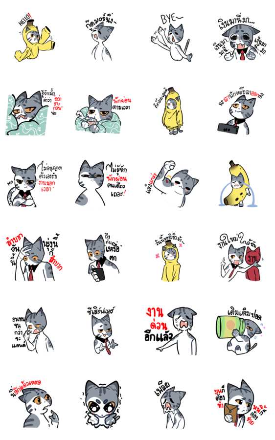 | スタンプ説明 | A cute and funny sticker of Mr. Blur, a little cat stuck in the life cycle of work. |