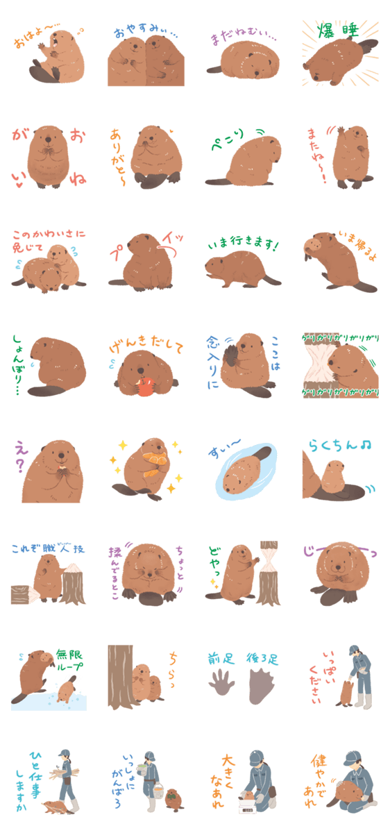 動物園で暮らすアメリカビーバーに注目した、ほっこりかわいいスタンプ。飼育員さんも登場します!