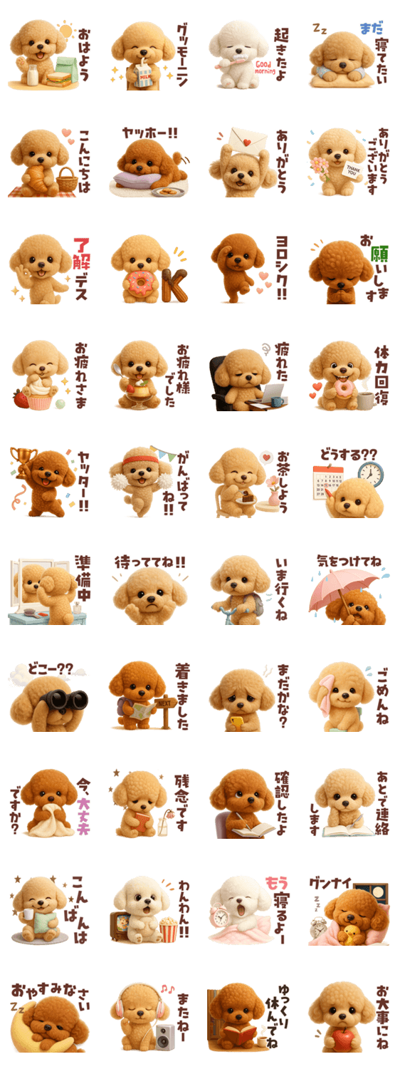 テディベアカットで可愛いトイプードルのぷっくり3D!!日常よく使うあいさつ編/毎日/一年中/家族/友達/ママ友/カップル/可愛い/大人女子/連絡/日常会話/挨拶/毎日使える/犬