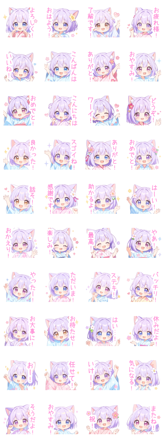 セリフ 付き 日常 スタンプ パープル 女の子 浴衣