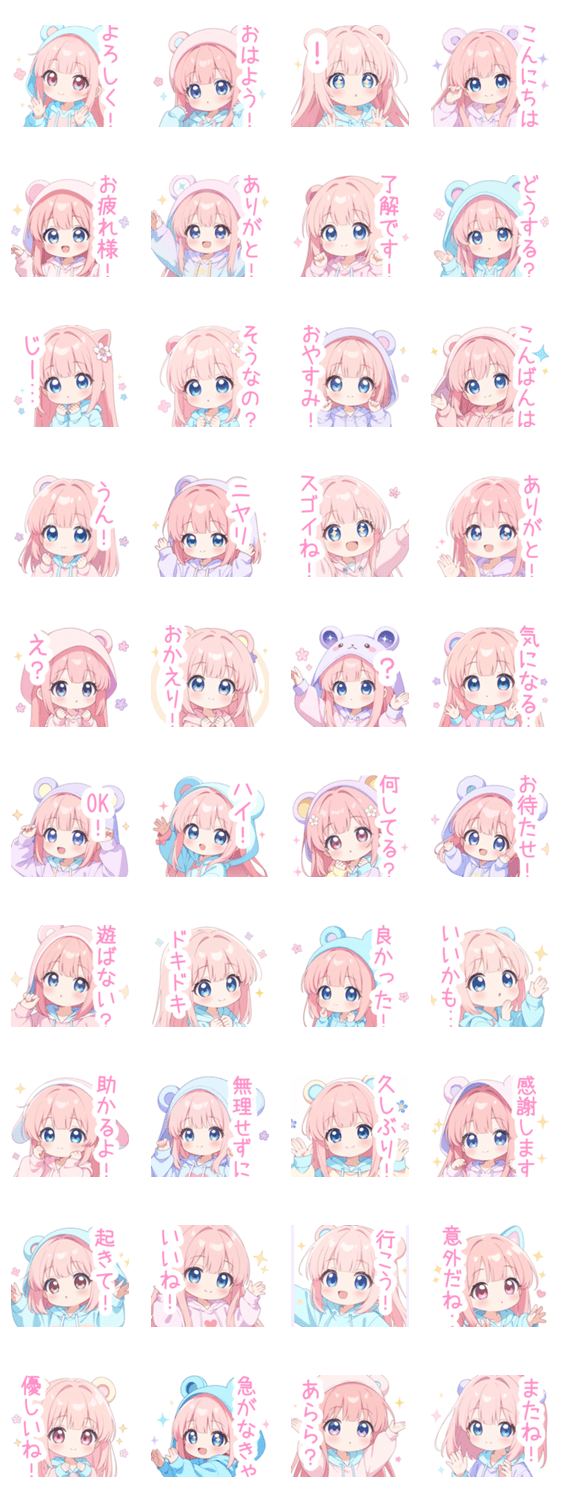日常 セリフ 付き スタンプ 女の子 クマ パーカー ピンク