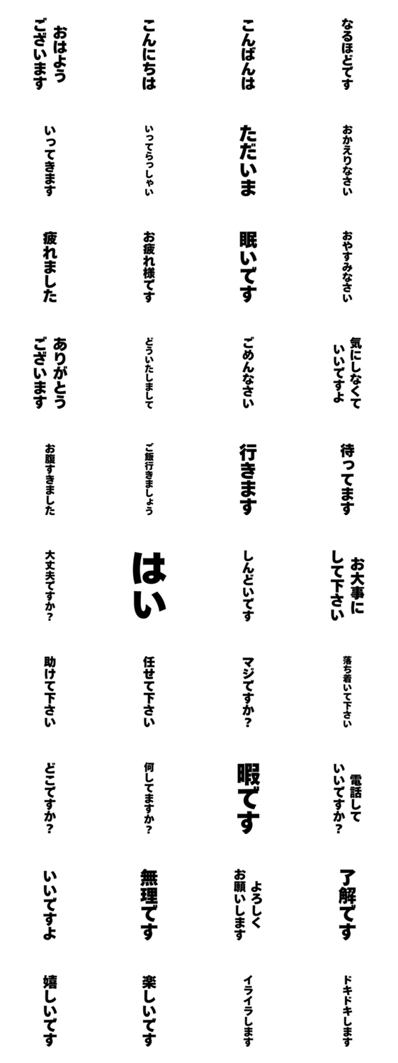 日常で使える文字だけ敬語スタンプ(縦書き・太字)です。文字入力が面倒な時にも使えて便利なのでオススメです。