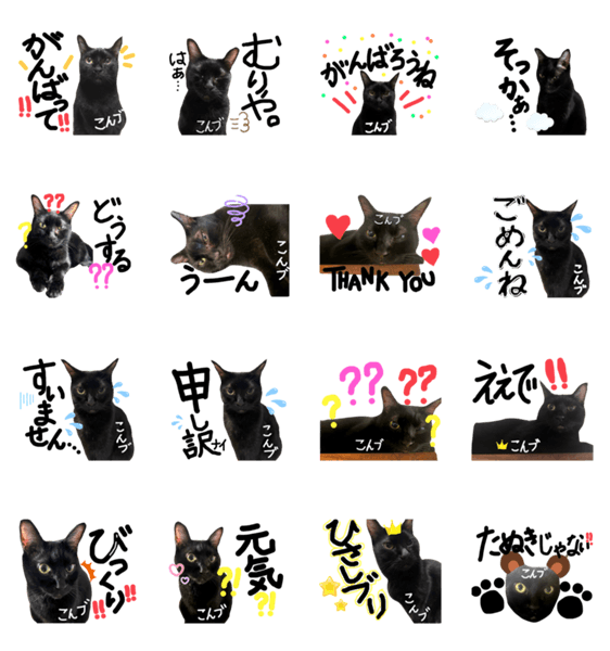 | スタンプ説明 | LINEスタンプメーカーでつくったスタンプです。6匹の保護猫のうちの、1匹(7キロ)です。名前はこんぶです。ふわふわで、いつもゴロゴロしています。 |