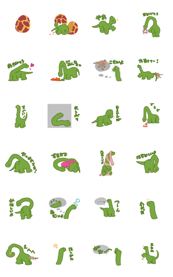 初めてスタンプをつくってみました。最近ハマっている恐竜ちゃんです。仲良くしてあげてくださいね。