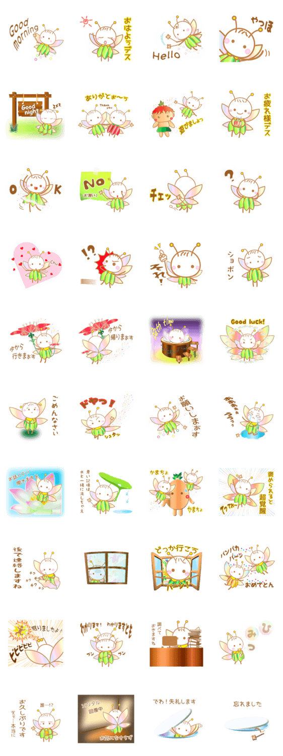 森に棲んでいる小さな妖精さんのスタンプです。背景が白以外だとチョッピリ光に包まれた妖精になっています