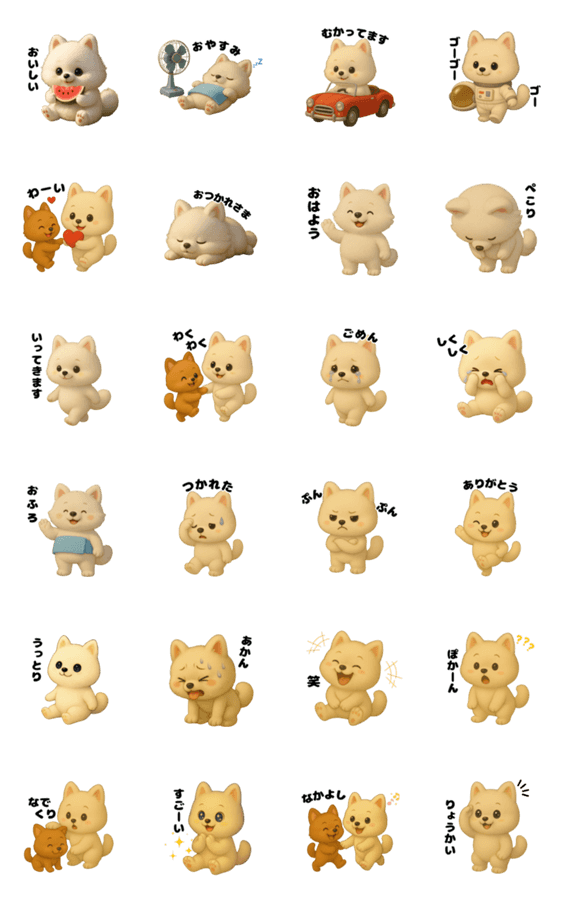もふもふで愛くるしいポメちゃんが、日常の様々なシーンを楽しく彩るスタンプです。喜怒哀楽の豊かな表情で、毎日の会話がさらに盛り上がること間違いなし!