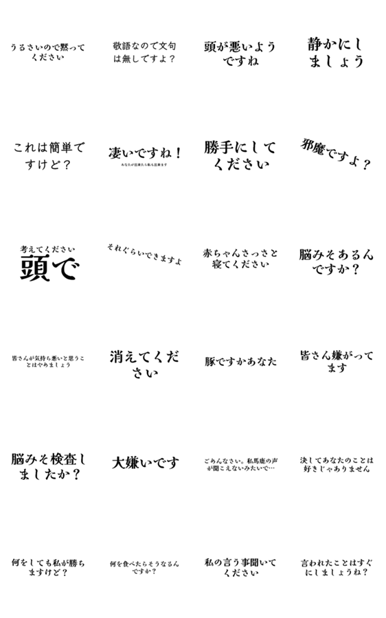 LINEスタンプメーカーでつくったスタンプです。敬語で悪口・煽りはいかがでしょうか?