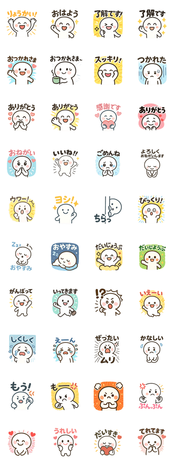 日常会話で使いやすい、ゆるっとかわいい言葉と表情のスタンプです。友だちや家族とのトークにぴったり!
