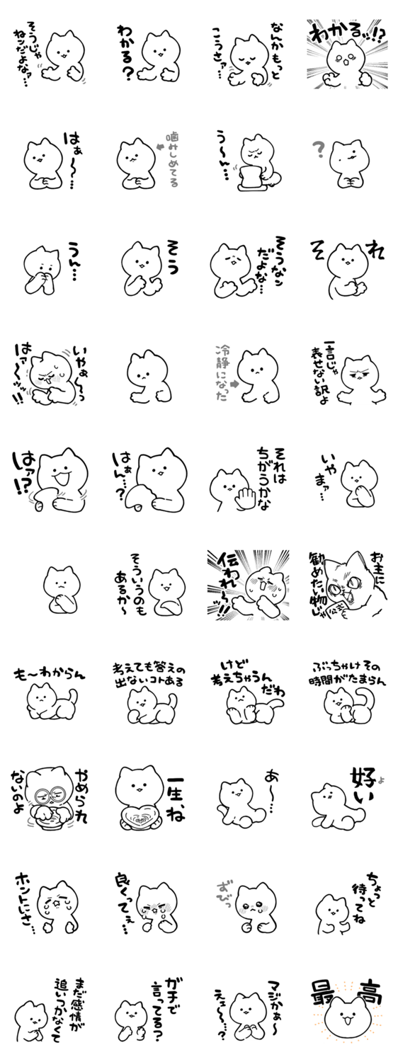 白ネコのあいうえお・・・ってるスタンプ
