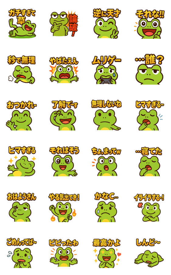 表情豊かなカエルのガエちゃんが、ツッコミから日常使いまで大活躍!楽しくてインパクト大のスタンプです。