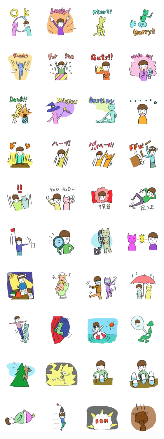 かおちゃんとネコのますます元気なスタンプです。