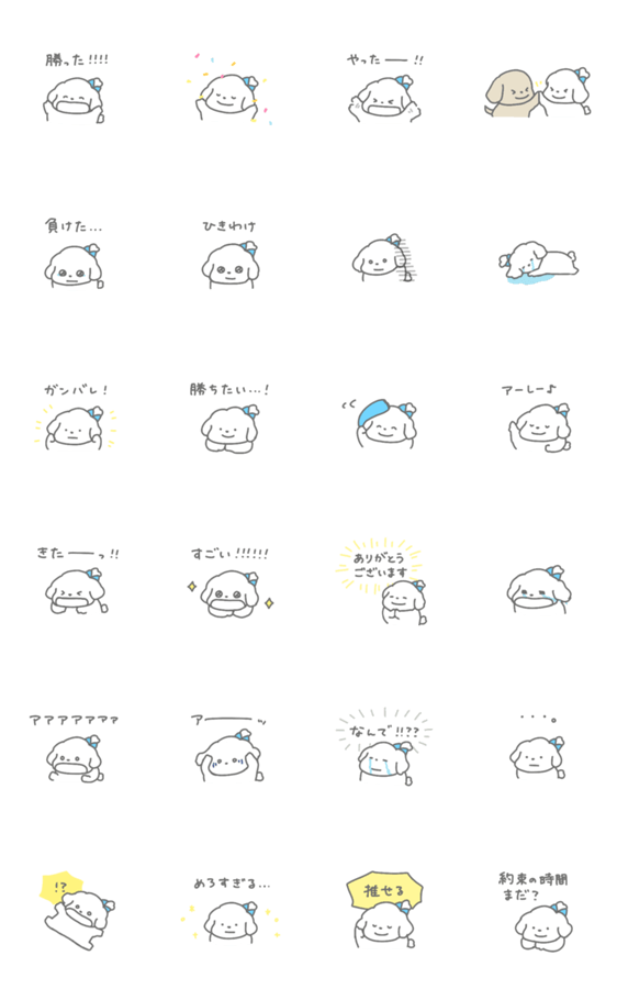 | スタンプ説明 | サッカー観戦初心者のしろいぬちゃんです。一生懸命応援しています。#しろいぬちゃん (犬/イヌ/サッカー女子/サポーター/Jリーグ) |