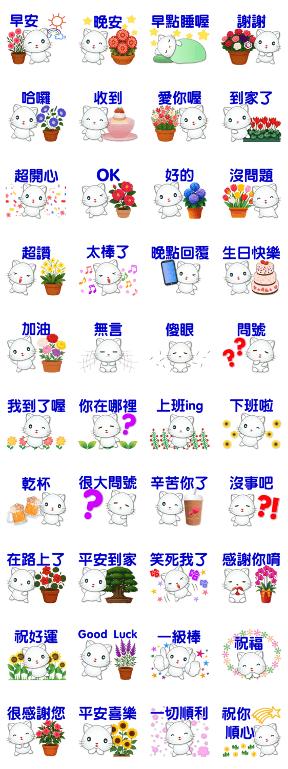 | スタンプ説明 | Cute white cat **Practical daily greetings |