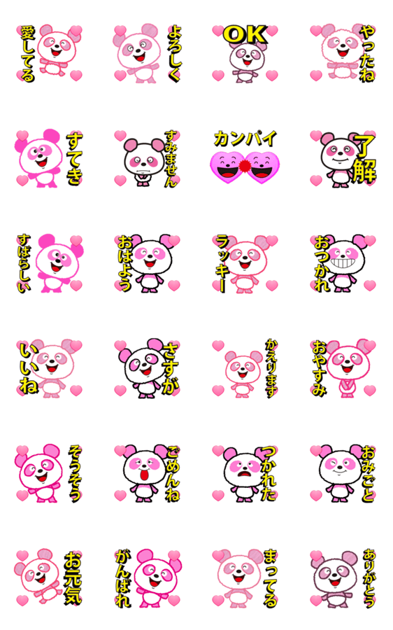 アニメピンクパンダ+3Dハート -LINEスタンプマニア