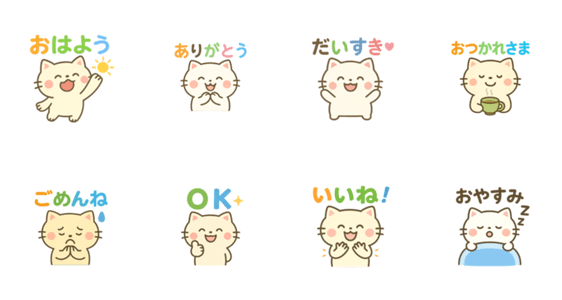 ふわふわねこの「ぴこにゅ」が毎日をもっと楽しくするスタンプです。ありがとう、おやすみ、OKなど、日常で使いやすい言葉がいっぱい!