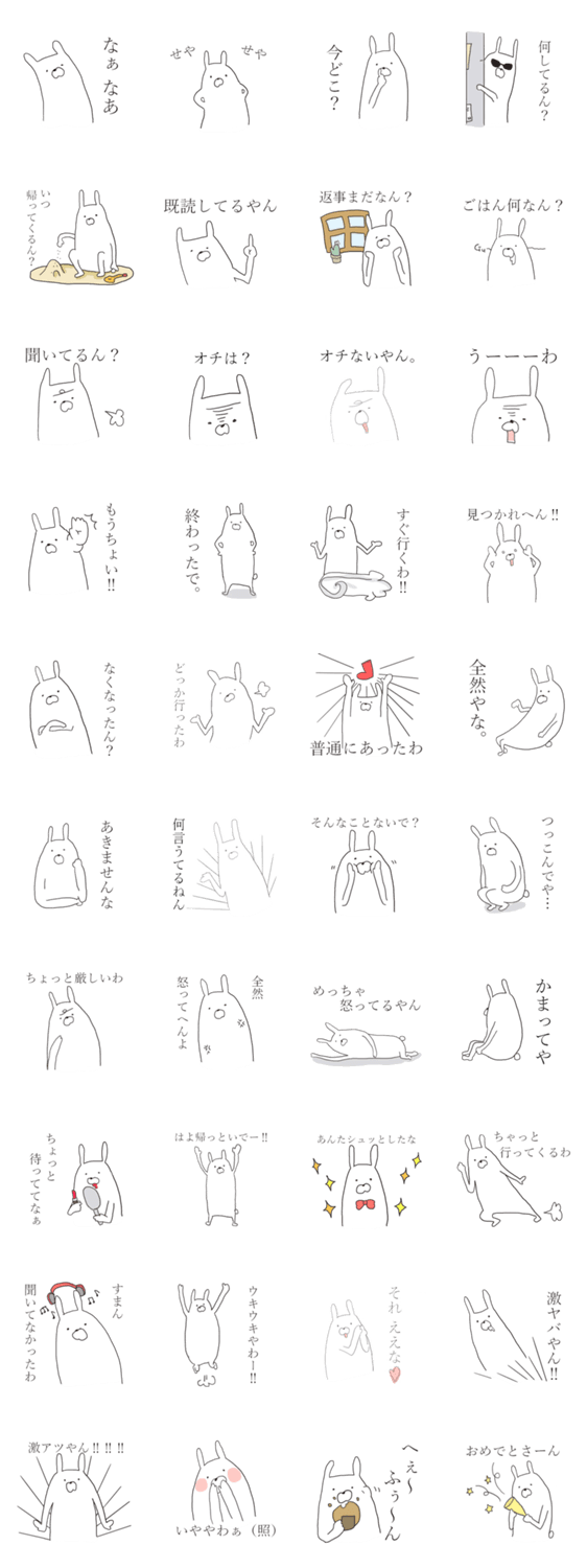 関西弁を話すゆるいうさぎさんのスタンプ。第三弾! よくしゃべるなぁ…