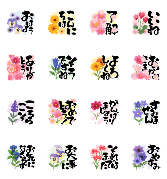 動く!秋の花とみやすい筆文字 絵手紙風 -LINEスタンプマニア