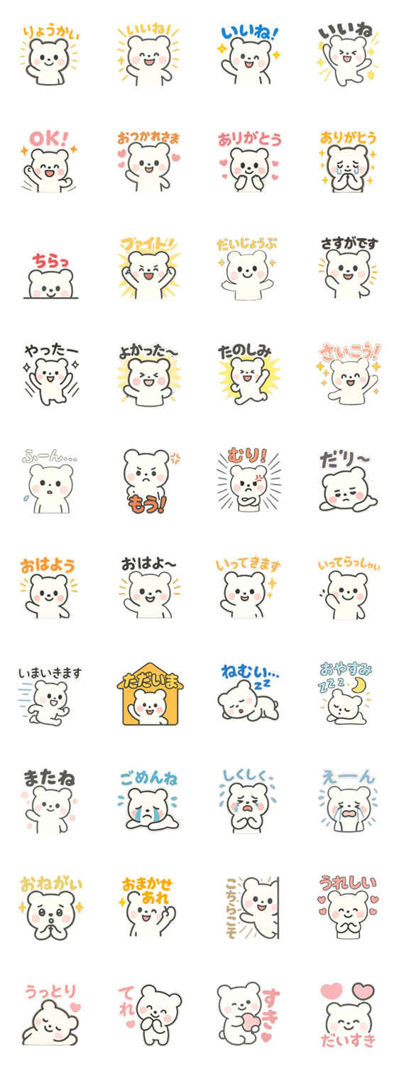シンプルで見やすい!気持ちをすぐ伝えられる万能くまさん。友達や家族にぴったり。