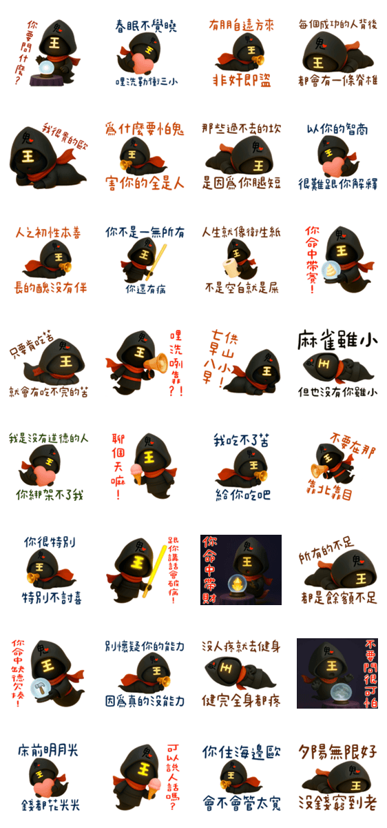| スタンプ説明 | The gates of hell open in the seventh month of the lunar calendar. Don't be afraid, use this Ghost King's nonsense sticker to liven up your chat room. |