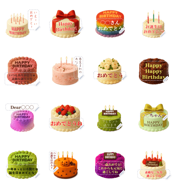 空欄に名前やお祝いの言葉・数字などを自由に書き込めます♪ポップ&キュートなカラフルバースデーケーキのメッセージスタンプ♥桜・ハロウィン・クリスマスケーキ等も♪ 現在この商品は一部のスマートフォン版LINE 10.3.0以上のトークルームでのみ使用できます。動作環境の最新情報はヘルプをご確認ください。